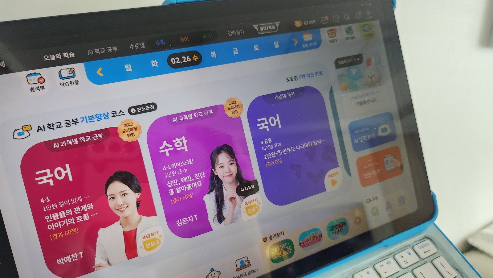 현재 3년차로 매일 오늘의 학습을 통해 열심히 공부하고 있어요. 학교과정 잘 따라가고 있고, 진도 잘 따라가고 있어