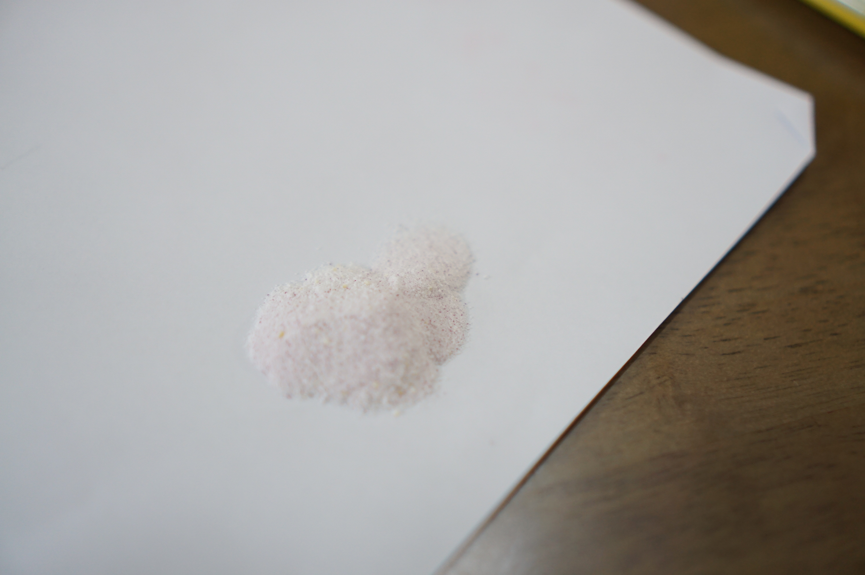 핑크색과 흰색이 섞인 가루의 형태로 되어 있고, 양도 많은 편이랍니다.